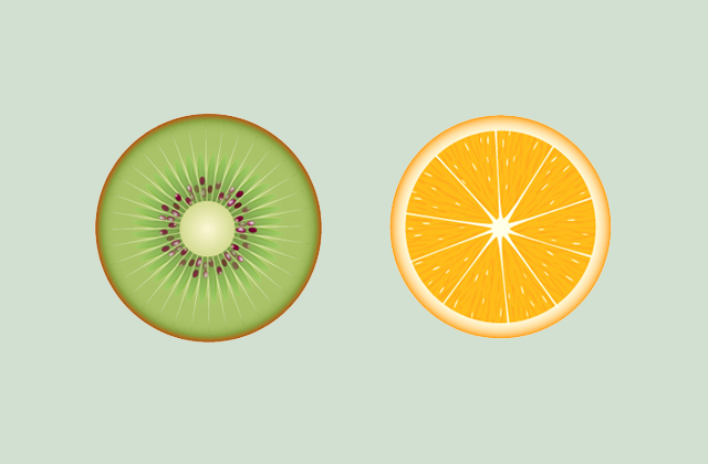Orange and kiwi slice illustrations created for the packaging design proposal